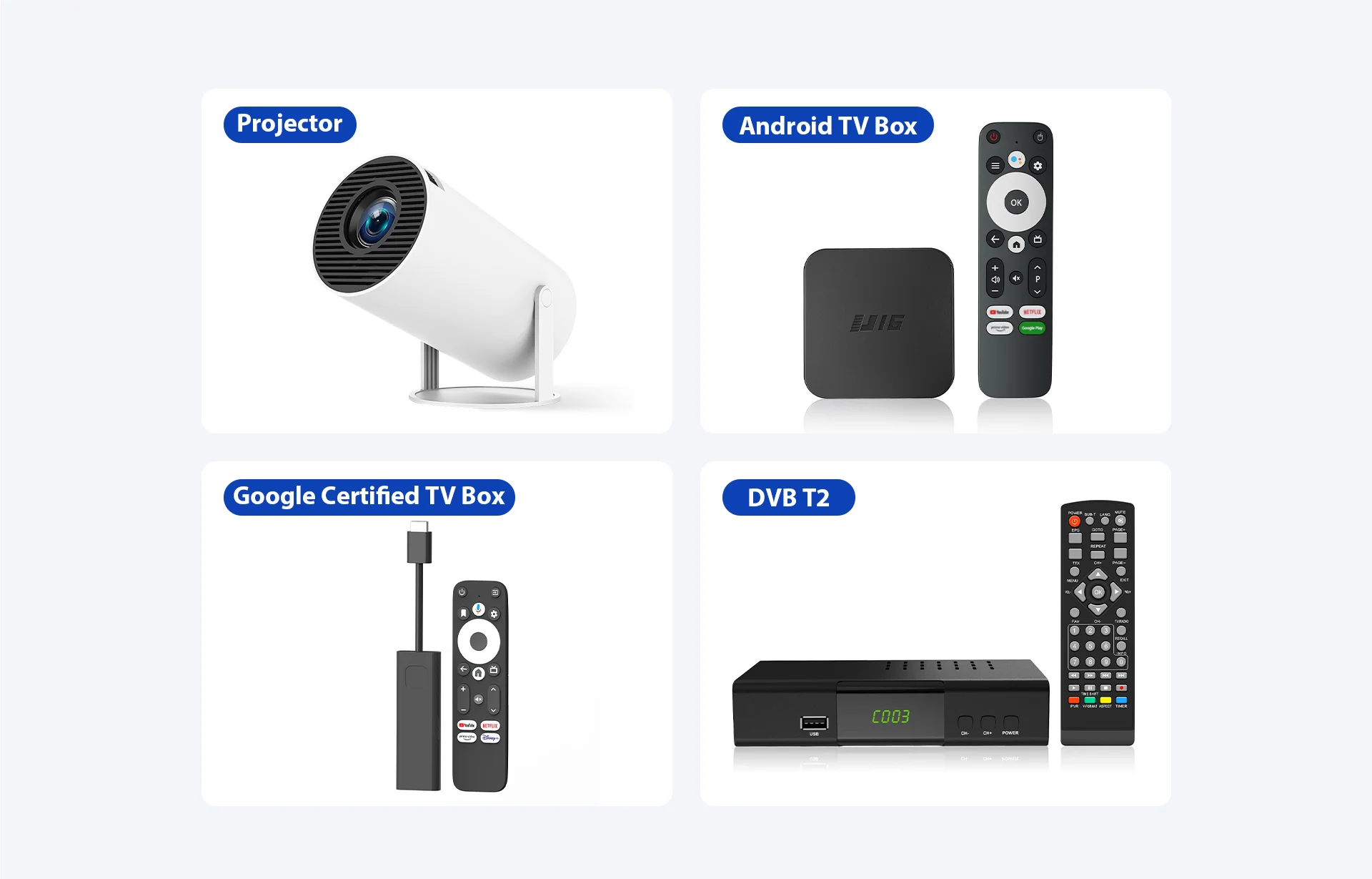 Productos principales:Google TV Box,Android TV Box, Decodificador, DVB T2,DVB S2